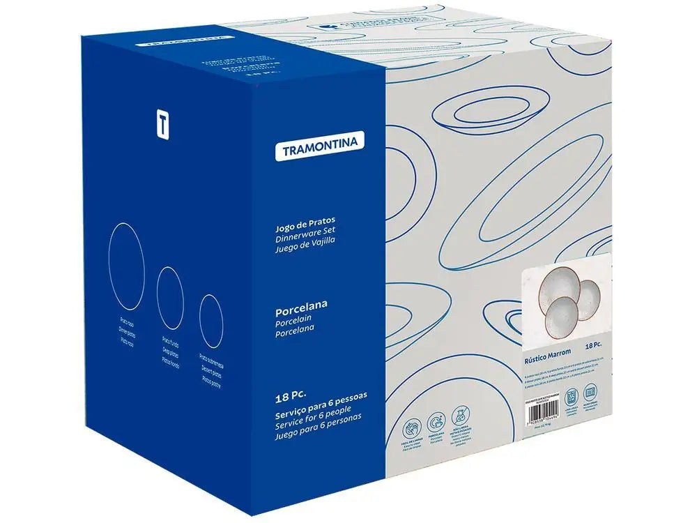 Jogo de Pratos Redondo de Porcelana Marrom - Tramontina Rústico 18 Peças